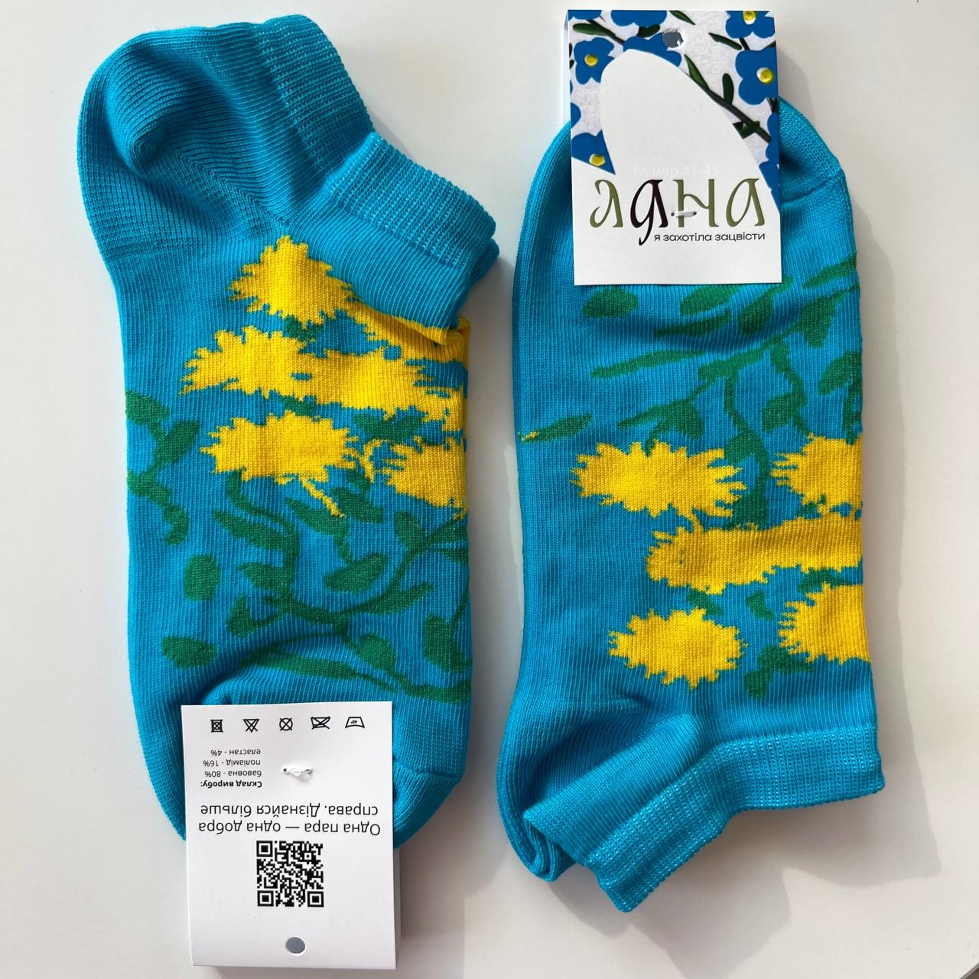 Шкарпетки за мотивами творчості Уляни Белей, мешканки Будинку сиріт з інвалідністю "Оселя Віри, Надії, Любові".